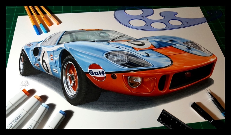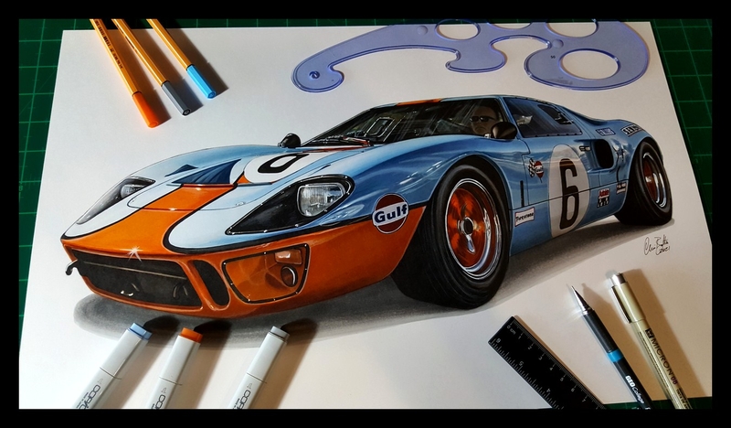 Browse the below portfolio of completed Ford Automotive Drawing Commissions by Clive Botha, a well-known automotive artwork commissions artist and custom car art designer. This collection of Ford automotive artwork pieces include drawings of both modern and classic Ford fan favourites including the 2021 Ford Mustang Mach 1, the 2011 Ford Focus and the 1969 Ford GT40 MK1.