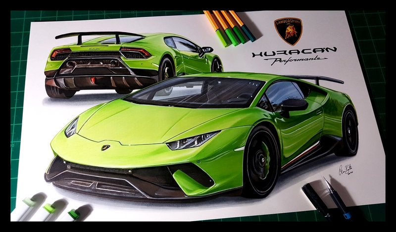 2017 Lamborghini Huracan Artwork Drawing - The Cartist