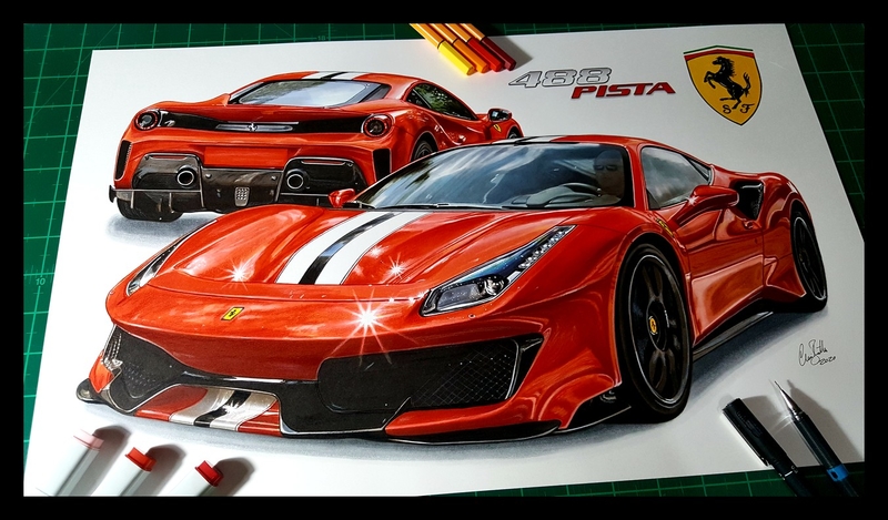 2018 Ferrari 488 Pista Artwork Drawing - The Cartist
