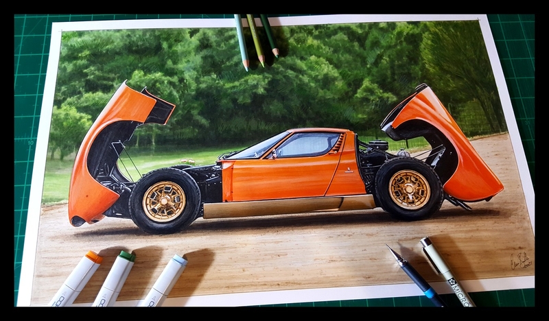 1968 Lamborghini Miura P400S Artwork Drawing - The Cartist